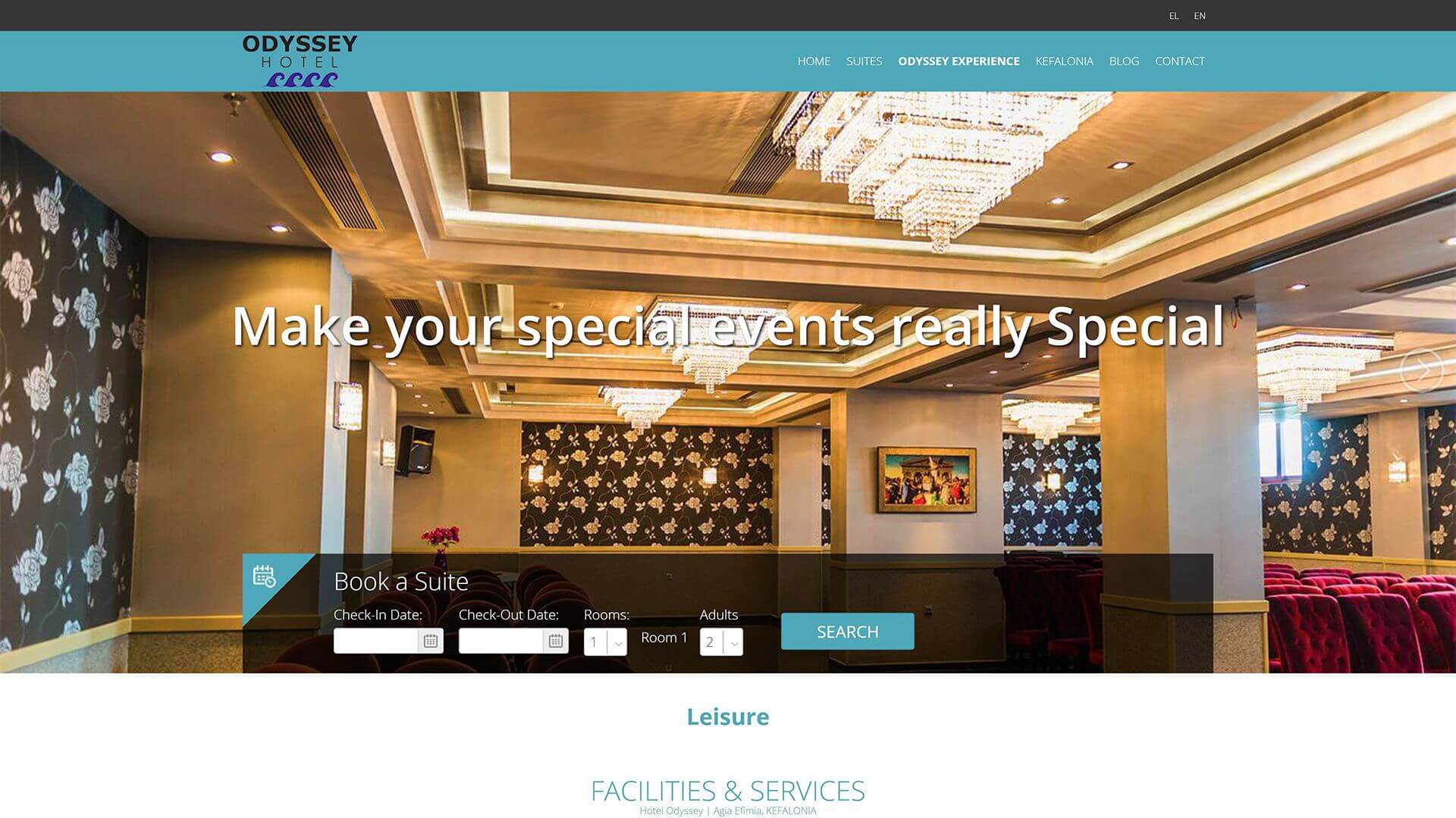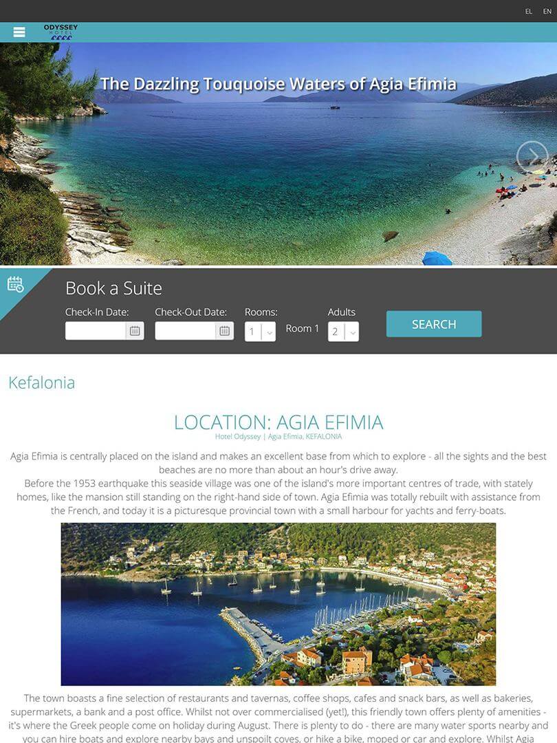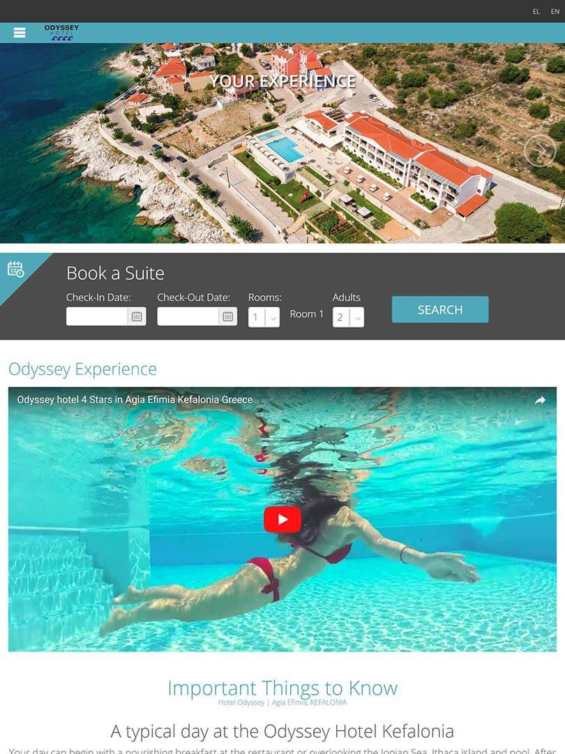 Ολοκληρώθηκε η κατασκευή νέας ιστοσελίδας για το ξενοδοχείο Hotel Odyssey στην Αγία Ευφημία. Η κατασκευή είναι φιλική για πρόσβαση από mobile συσκευές και περιλαμβάνει εκτός των άλλων:
