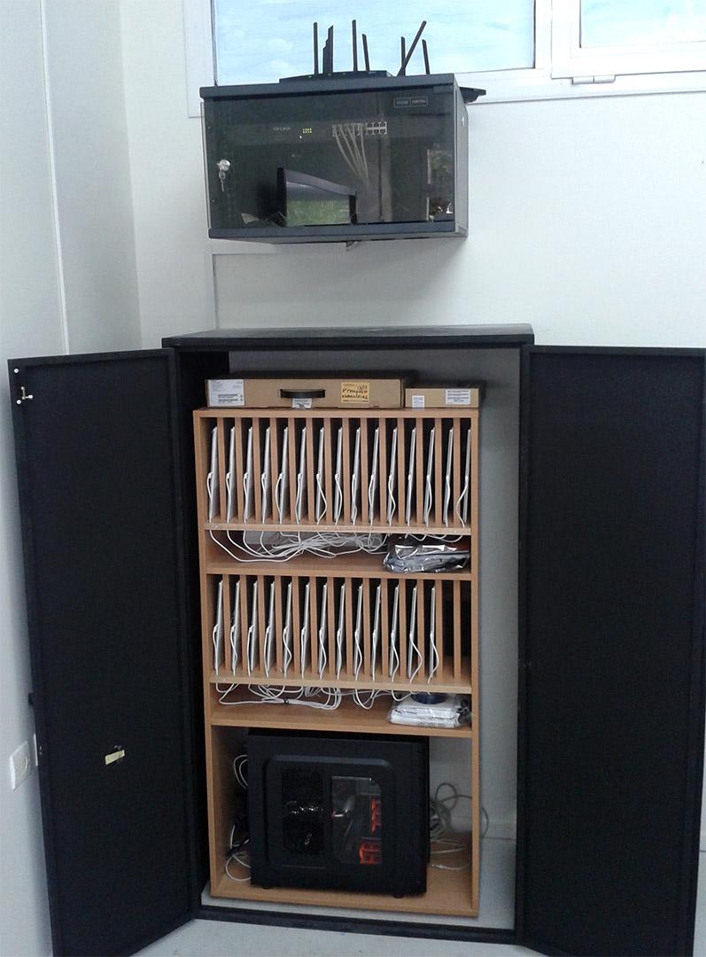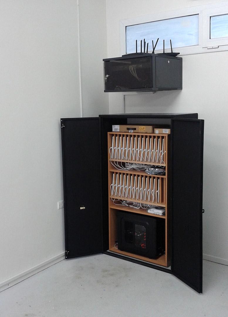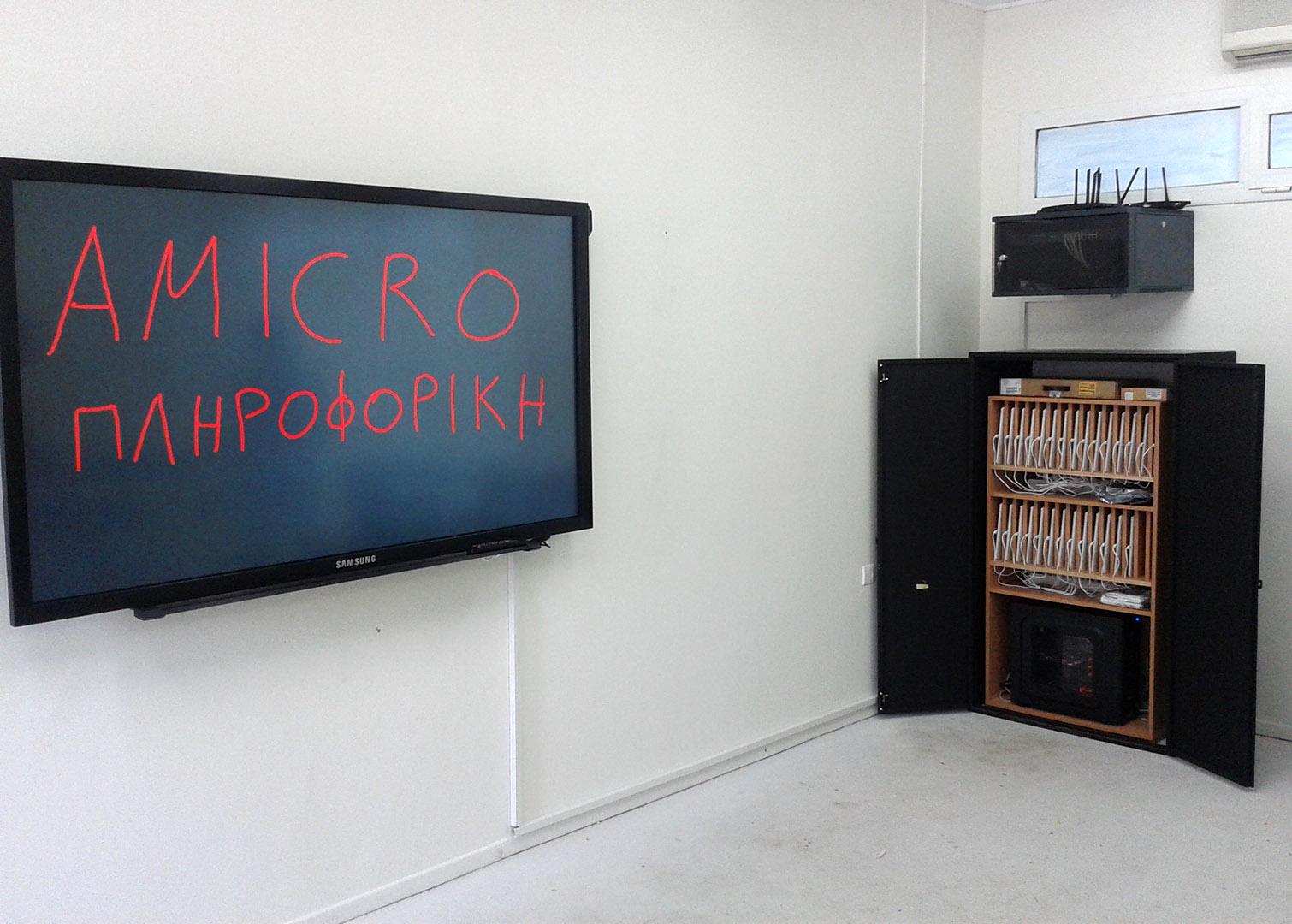 Επίσης τοποθετήθηκε ερμάριο φόρτισης του συνόλου των ταμπλετών καθώς και software-πλατφόρμα διαχείρισης μαθημάτων που επιτρέπει στον καθηγητή τον πλήρη έλεγχο του συστήματος καθώς και να στέλνει περιεχόμενο απευθείας στις ταμπλέτες των μαθητών. Ο κάθε μαθητής αντίστροφα έχει την δυνατότητα να αλληλεπιδρά απευθείας με τον καθηγητή μέσω της ταμπλέτας ή με άλλους μαθητές. Με αυτο τον τρόπο ενισχύεται η απόδοση της διδασκαλίας και η εμπλοκή των μαθητών στην διαδικασία της μάθησης.