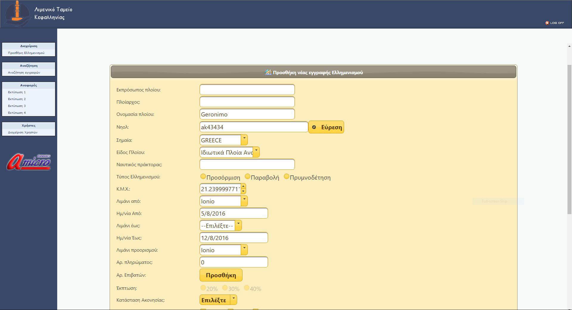 Ιδιαίτερη σημασία έχει το γεγονός ότι η ολοκλήρωση της μηχανοργάνωσης για των ελλιμενισμό σκαφών στα λιμάνια της περιοχής από την Amicro Πληροφορική, αποτελεί πρωτιά για την Κεφαλονιά & Ιθάκη σε εθνικό επίπεδο. Το σύστημα βασίζεται σε proprietary λύση custom λογισμικού που έρχεται να καλύψει τις συγκεκριμένες ανάγκες του Λιμενικού Ταμείου.