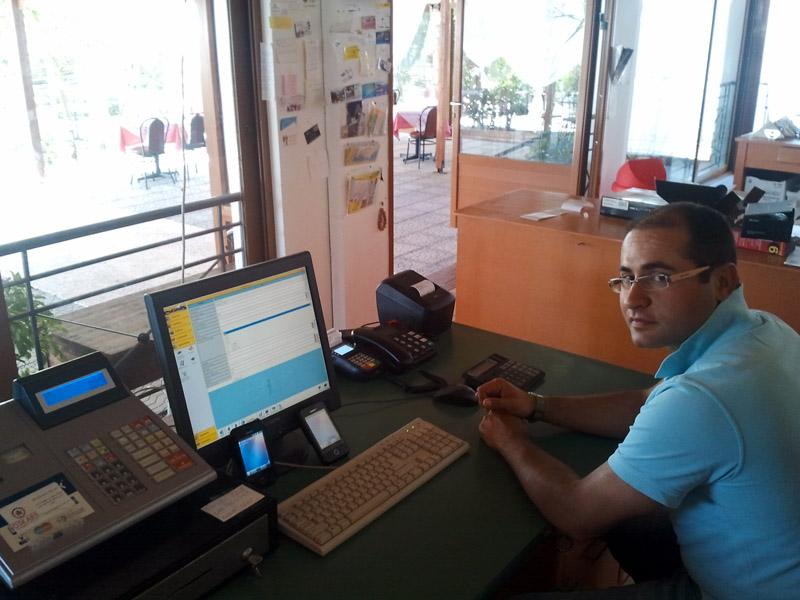 Πιο αναλυτικά, η εφαρμογή εγκαταστάθηκε σε ένα POS που θα λειτουργεί σαν SERVER και θα έχει και την σύνδεση με την ταμειακή μηχανή για να τυπώνονται απευθείας οι αποδείξεις. Επίσης η εφαρμογή εγκαταστάθηκε και σε 2 ασύρματα PDA μέσω των οποίων θα γίνεται η ασύρματη παραγγελιοληψία οι οποίες θα επιστρέφουν προς διαχείριση στον SERVER και ταυτόχρονα θα τυπώνονται σε δυο εκτυπωτές: ένα στην κουζίνα και έναν στο ταμείο.