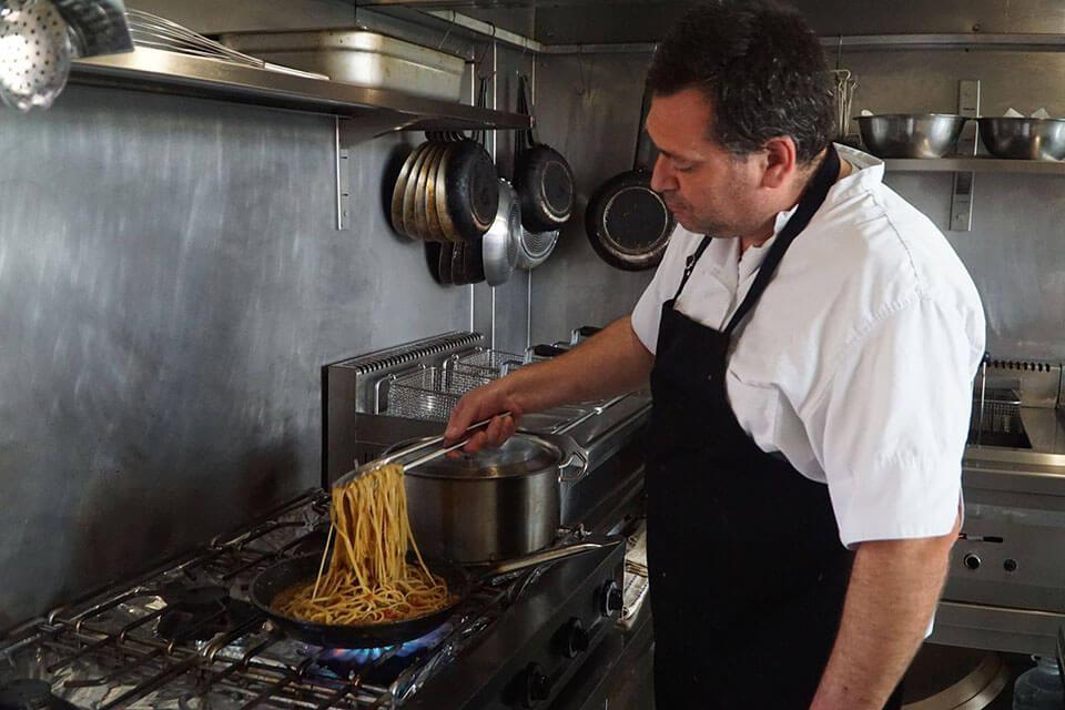 Ο σεφ ετοιμάζει με αφοσίωση ιδιαίτερα πιάτα που βασίζονται στην τοπική κουζίνα του νησιού.